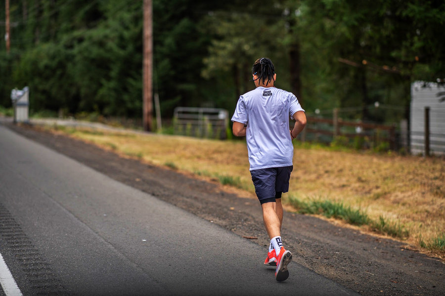 第二段是总长 8.42 公里从城区到山林的跑坡赛道,加上是凌晨作战与跑完第一棒的肌酸堆积,Zoom Fly Flyknit 成为了第二战的上脚选择。
