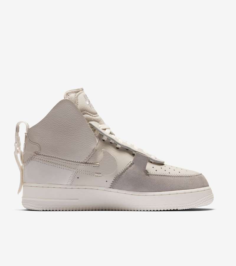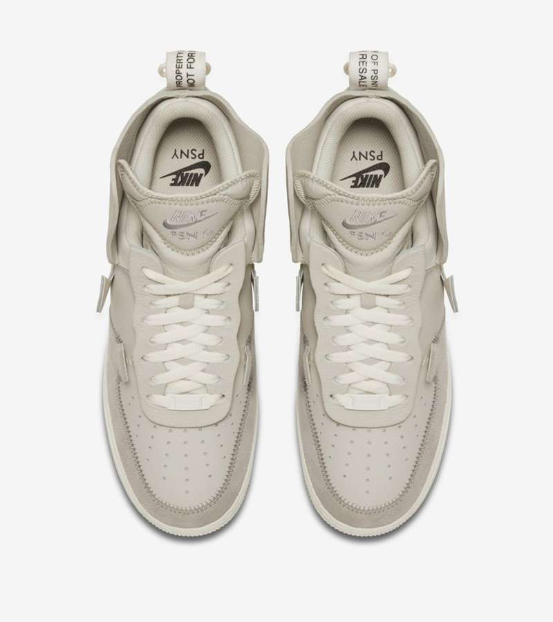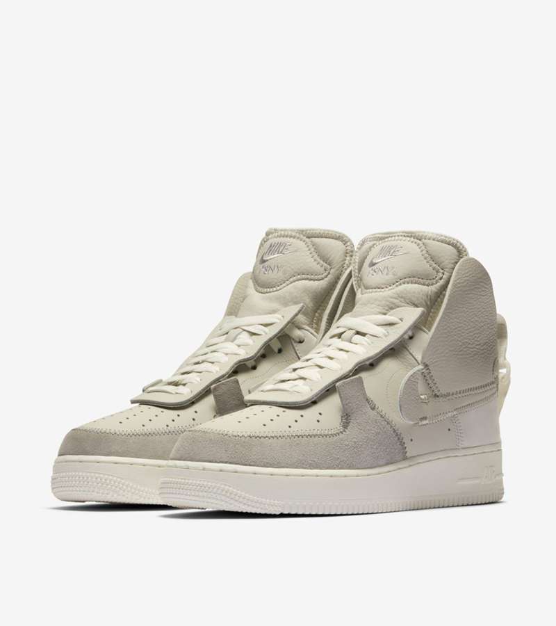 鞋款在 Air Force 1 High 经典造型的基础上,采用近期最火热的解构理念重塑。将 AF1 Hi 标志性的脚踝绑带移至后跟鞋提,细节注入 PSNY、WNL (We Need Leaders) 等文字,既传承经典,又拥有不俗的个性表达。
