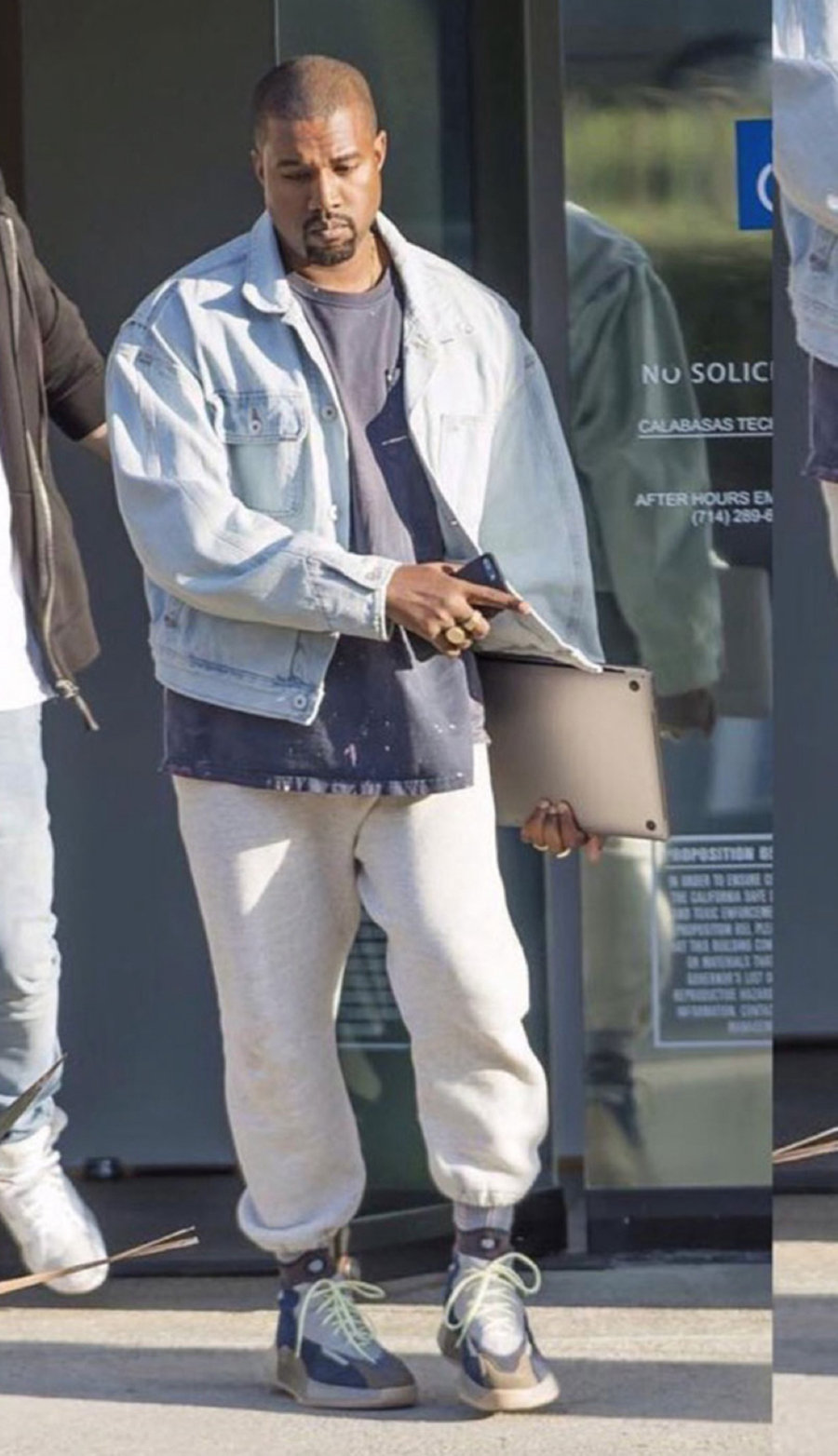 从之前的上脚图来看,这款 Yeezy 篮球鞋圆润复古设计风格与 Yeezy 700 颇为相似,无论是鞋头皮革造型还是灰、蓝搭配黄色鞋带的配色明显都传承自 Yeezy 700。