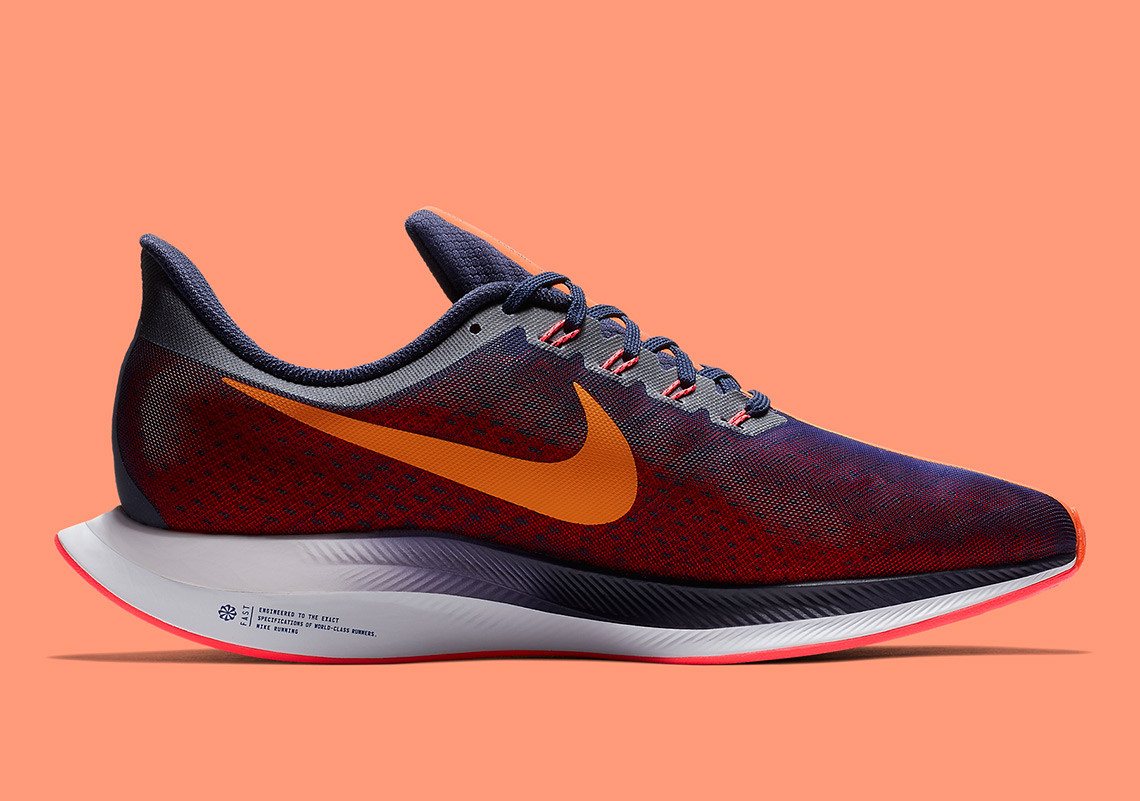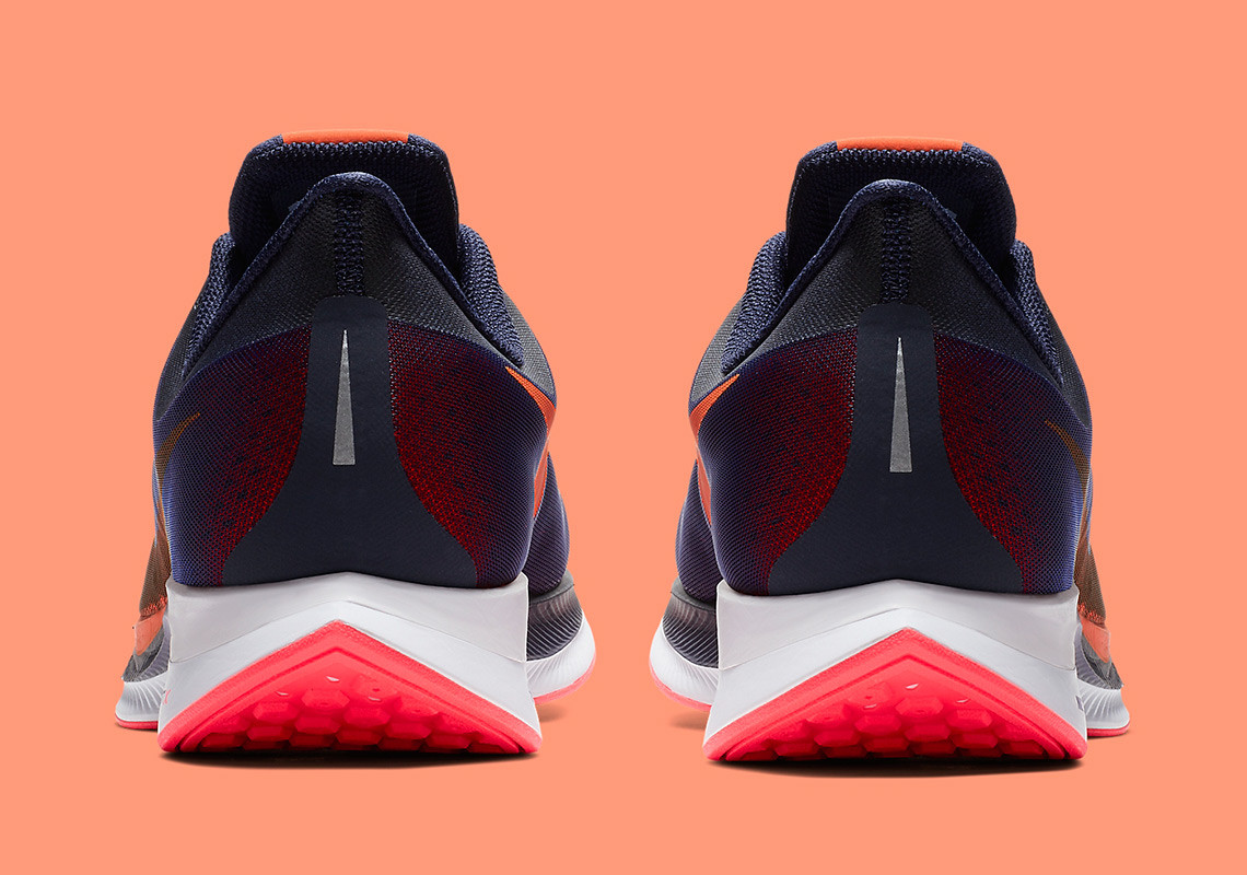之所以说它低调又吸睛,主要是因为配色在深邃的海军蓝主调下,内层鞋面、Swoosh 与鞋面上的线条装饰都以亮眼的橙色点缀,还搭载亮粉色的外底,带来深色与亮色的强烈冲击,与这双跑鞋设计风格不谋而合。