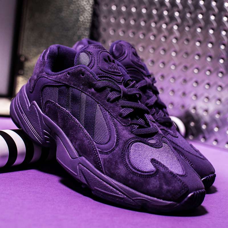 这双 adidas Originals Yung-1 “Triple Purple” 以紫色贯穿,采用了紫麂皮材质打造细节,质感表现依然不俗,整体感觉颇为鬼魅、神秘,绝对是街头的眼球收割机。相比已经发售几款配色,这双看起来更加张扬。