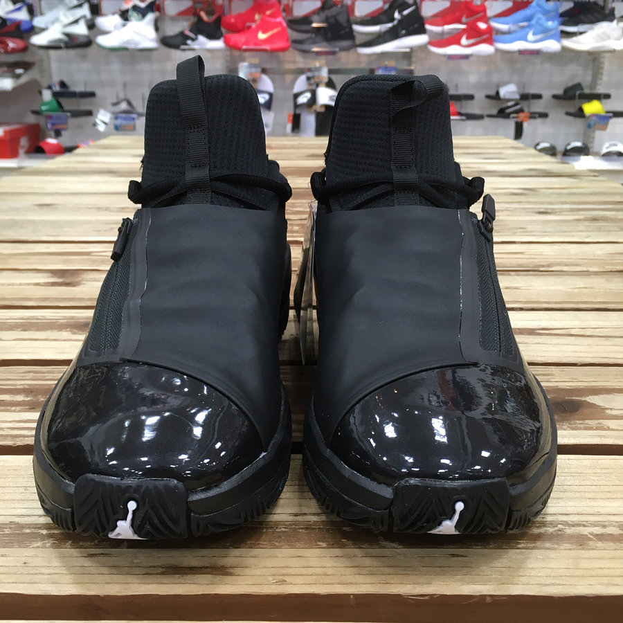 鞋款整体以纯黑色为主调,仅在后跟、外底等细节中加入白色点缀,低帮鞋型加入拉链式双层鞋面设计,为这双鞋增加了不同的上脚效果,外观看起来十分酷炫,纯黑配色也非常适合实战。