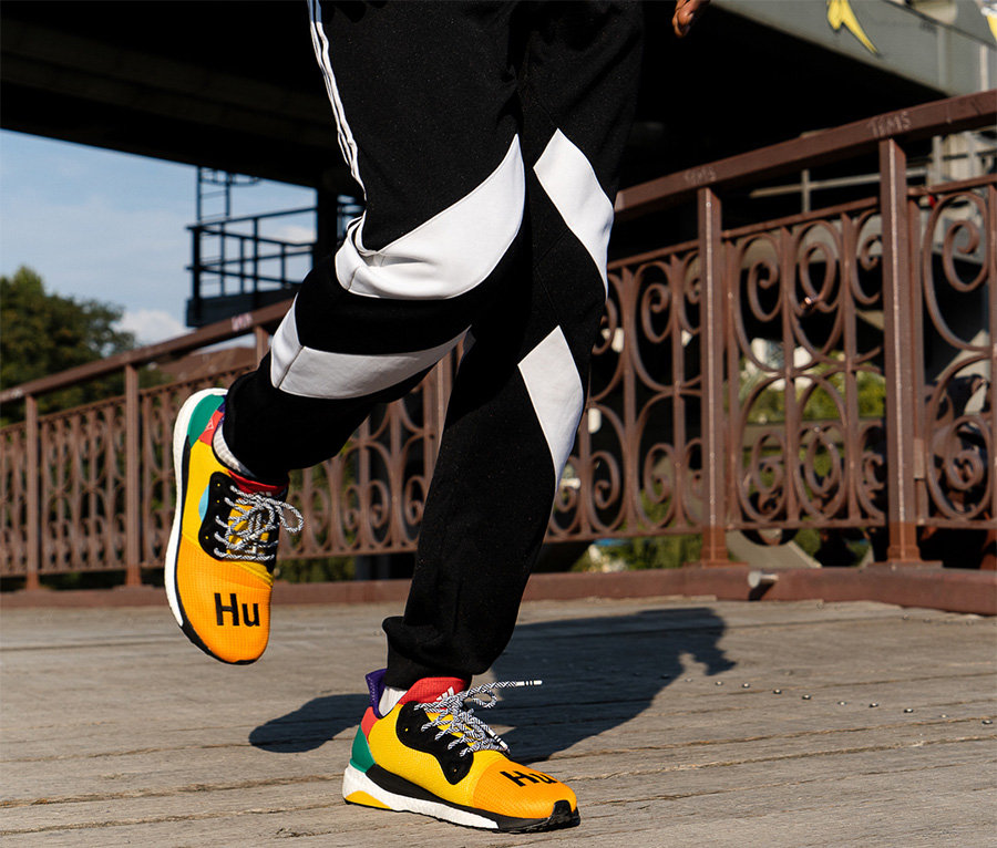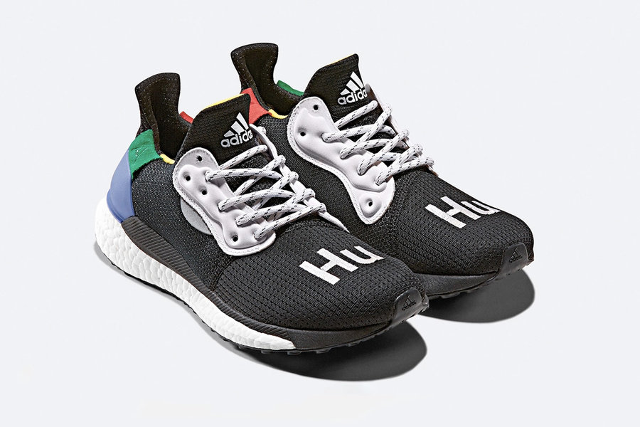 除了菲董亲自上脚的多彩拼接配色外,Pharrell Williams x adidas Solar Hu Glide 还带来了白色和黑色两个更为百搭的配色。 同样在鞋头呈现了 Hu 字样,就算是白色和黑色配色,也有夺目的撞色效果,个性指数爆棚! 这一系列目前已经在海外上架,传言中国区也将发售,搭载了全掌 Boost 中底,以跑鞋鞋型为原型,更具运动性能。 想要运动又想要个性穿搭的朋友,不妨重点关注。