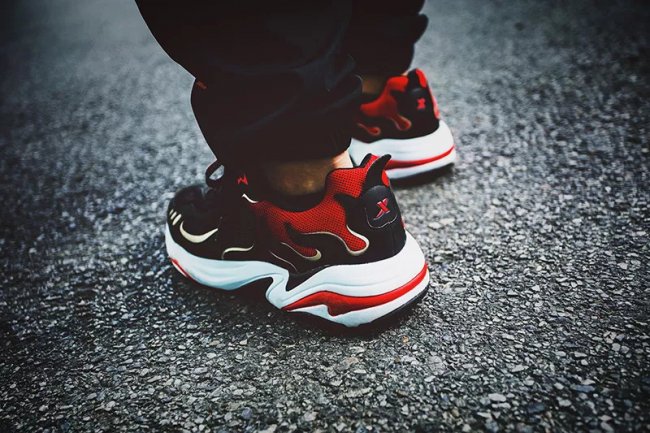 整体暗色的渲染,加上老爹鞋的造型,为这双黑红配色特步风火鞋增添了百搭的属性!