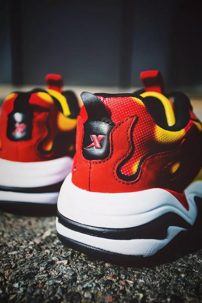当年这双鞋是为人气爆棚的巨星歌手谢霆锋而打造,将运动与潮流属性相结合,根据谢霆锋的火焰吉他为灵感,历史性地将火焰花纹与鞋款相结合,打造出红极一时的初代特步风火鞋!