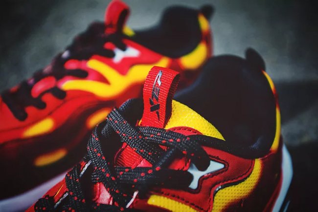 鞋面标志般的火焰纹理也进行了升级,浮雕立体式的火苗更富有冲击力,加上红、黄两种鲜艳颜色的相互碰撞,打造出 3D 的视觉效果,让鞋子上的火焰栩栩如生,呈现出灵动的感觉。