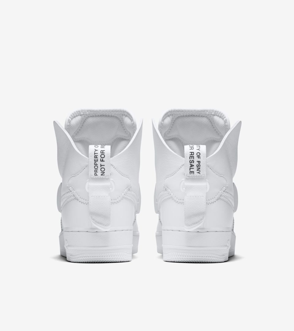 鞋款在 Air Force 1 High 经典造型的基础上,采用近期最火热的解构理念重塑。将 AF1 Hi 标志性的脚踝绑带移至后跟鞋提,细节注入 PSNY、WNL (We Need Leaders) 等文字,既传承经典,又拥有不俗的个性表达。