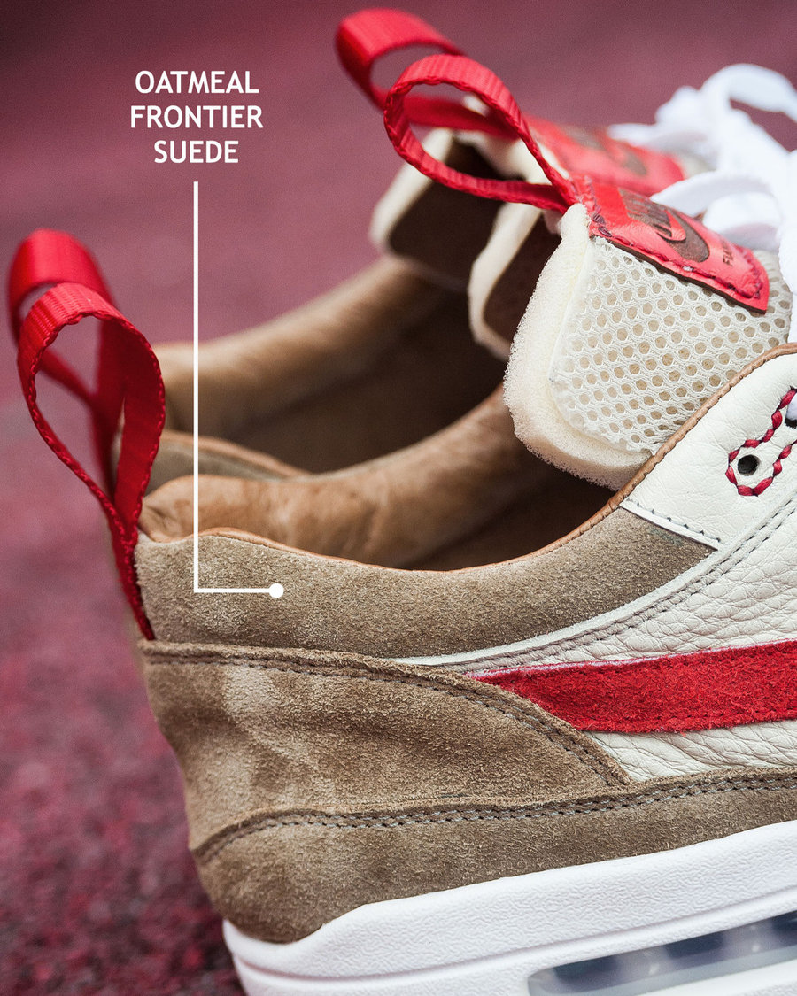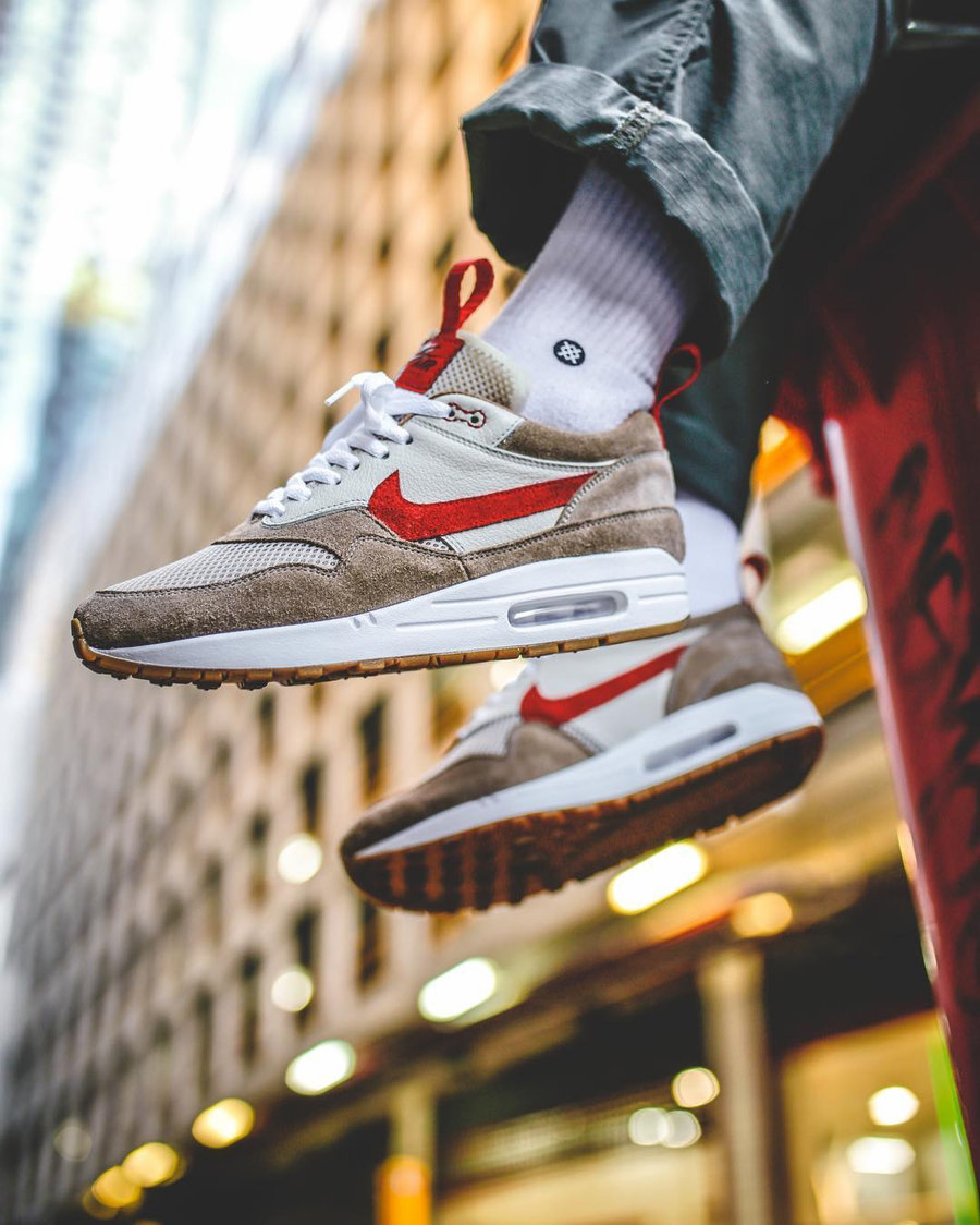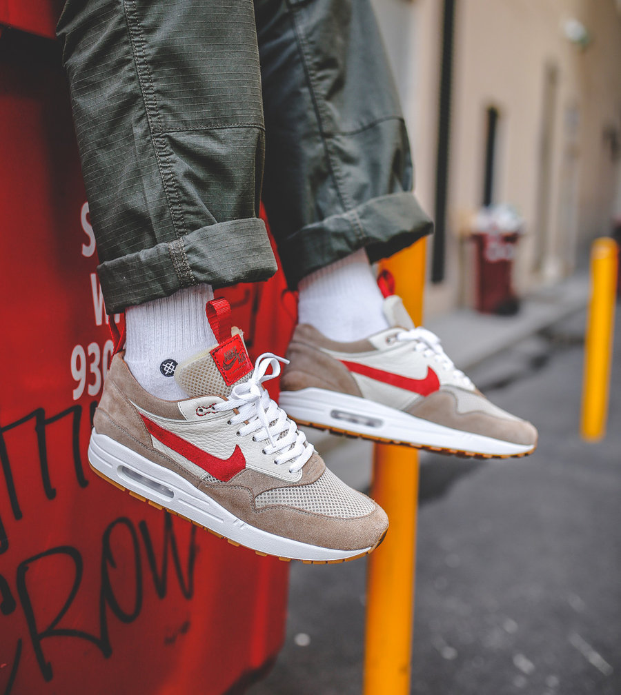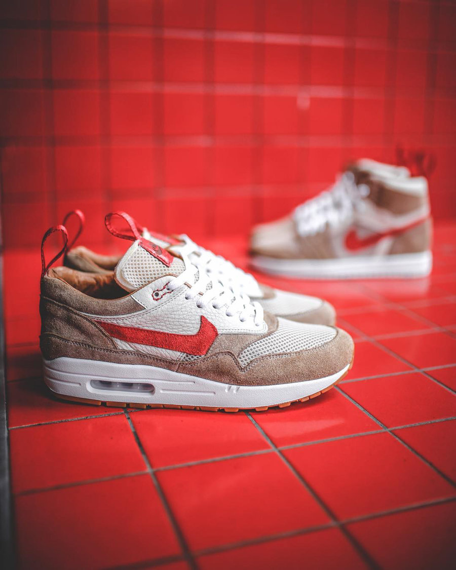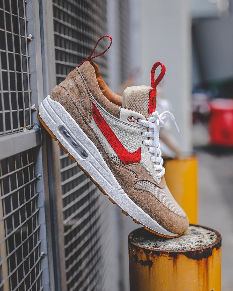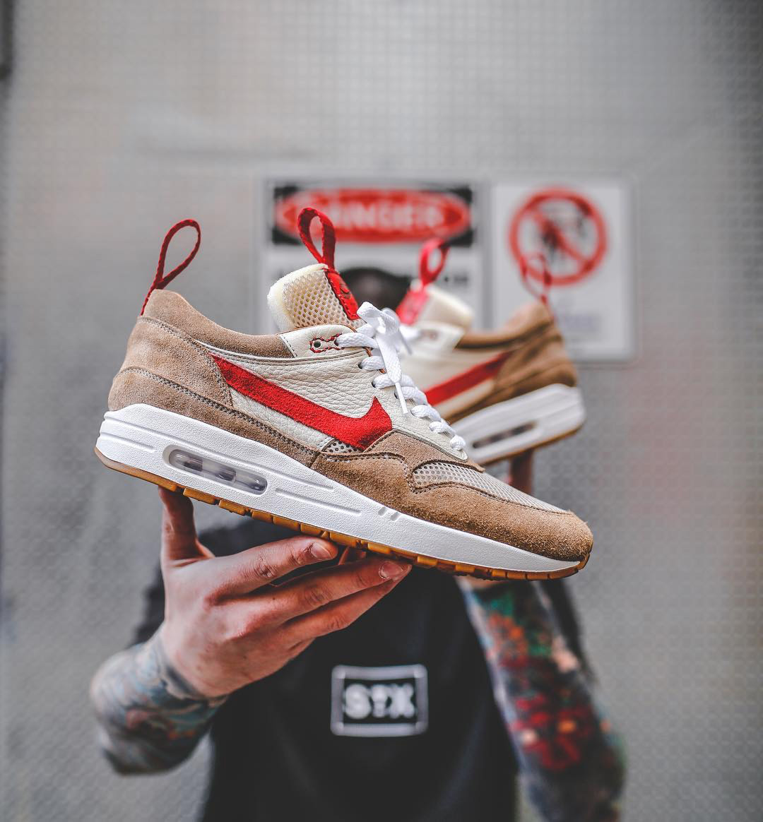 这双定制作品以 Nike 非常经典的 Air Max 1 为原型,将如今已经天价的火星鞋 Nike Craft Mars Yard 2.0 的配色融入其中,麂皮、网眼与优质面料相结合,面料、做工与质感都极为奢华。