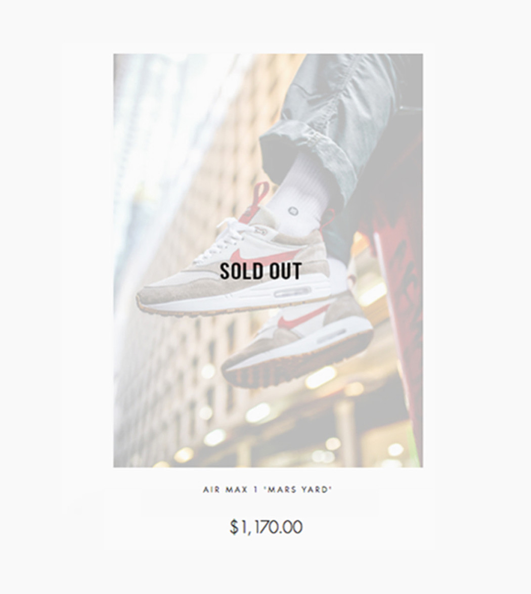 这双定制作品的售价为令人咋舌的 $1170 美元,约合人民币 ¥8000 元左右,同时还有 Air Jordan 1 与 Air Max 1 的套装售价为 $1970 美元,约合人民币 ¥13500 元左右,尽管如此天价也全部售罄,可见球鞋如今的影响力之大。