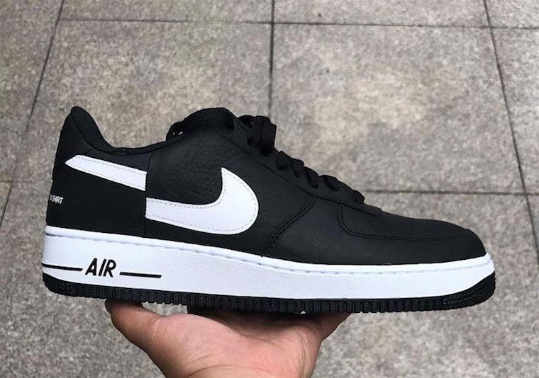 本季联名中,切割式的 Logo 成为主体,不仅是服饰单品,连着双 Air Force 1 鞋面上的 Swoosh 也采用断钩设计,有一种别样的几何解构感,整体以黑白色为主调,后跟 “Comme des Garçons SHIRT” 与 “SUPREME” 字样彰显联名身份,辨识度绝对足够。