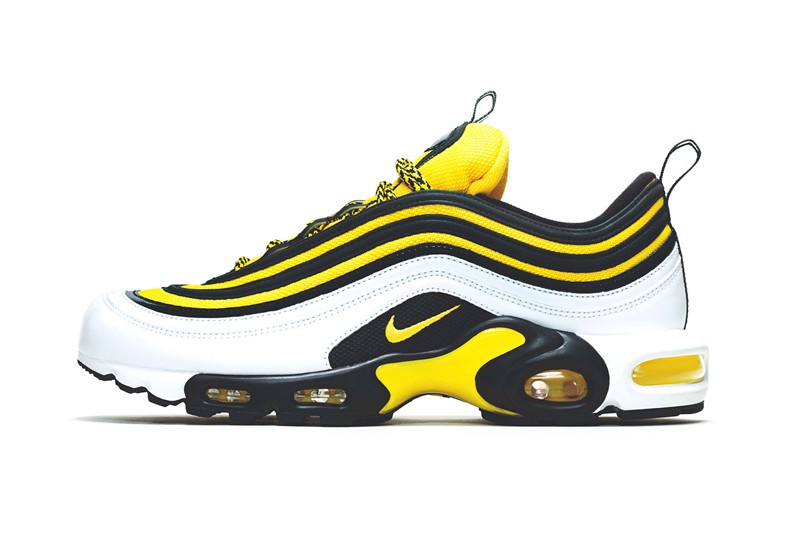此套装包含 Air Max 95、Air Max Plus、Air Max Plus 97 分别三双鞋款,并将套装命名为 “Frequency”。可以理解为与电磁有关的频率的意思,故而鞋款配色采用黑白黄三色来表现常见与电有关的标志或图案!