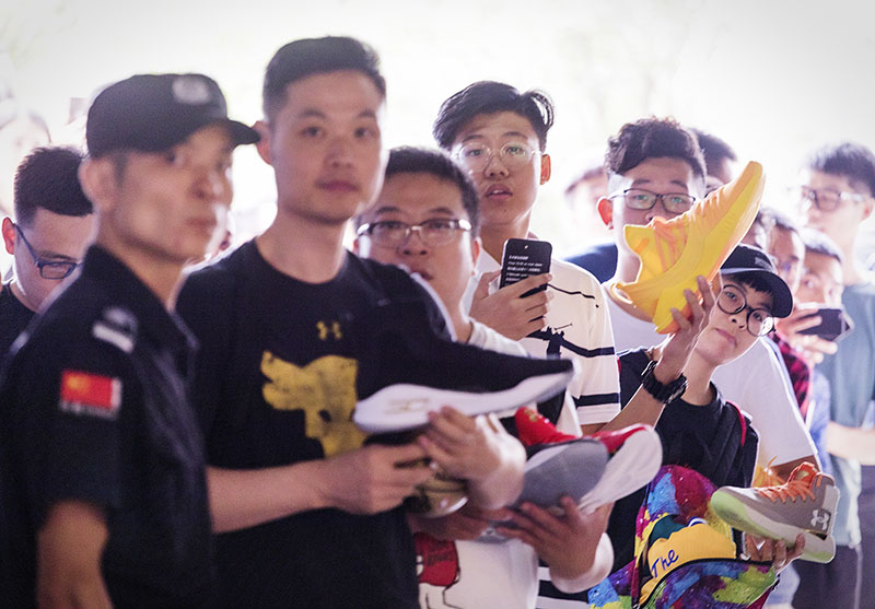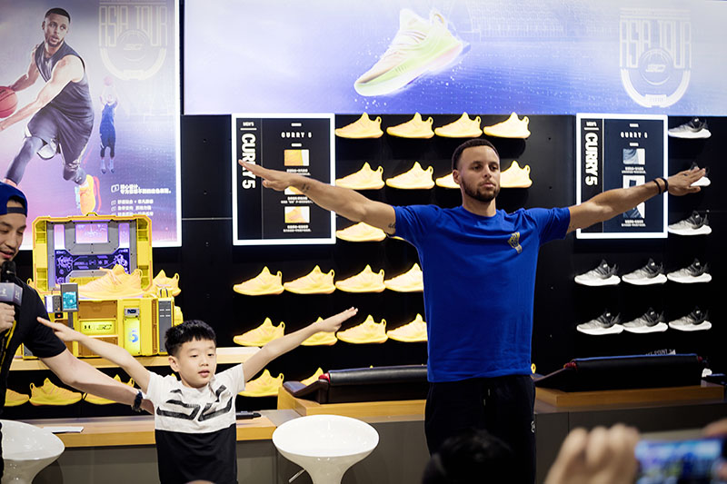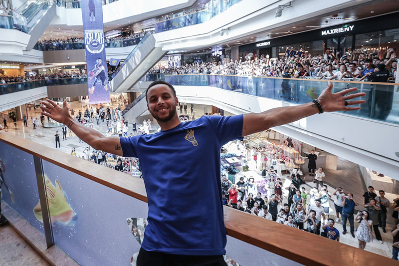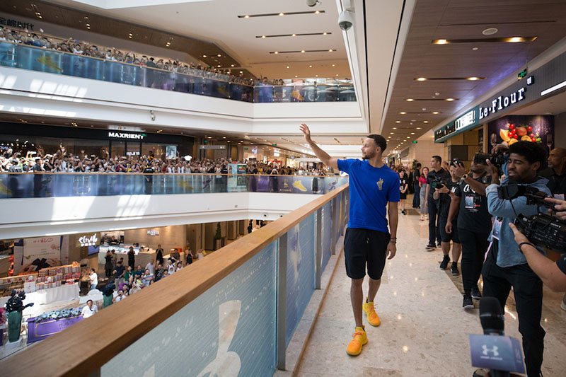 当天上午的第一个活动,库里来到武汉壹方 UA 旗舰店,偌大的商场被粉丝围的里三层外三层。