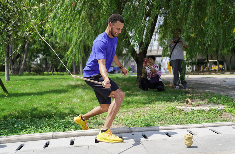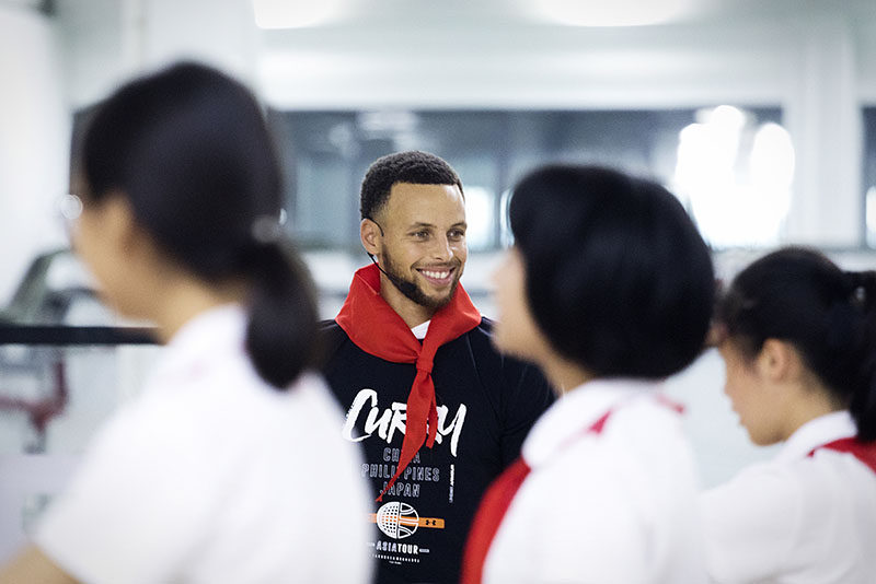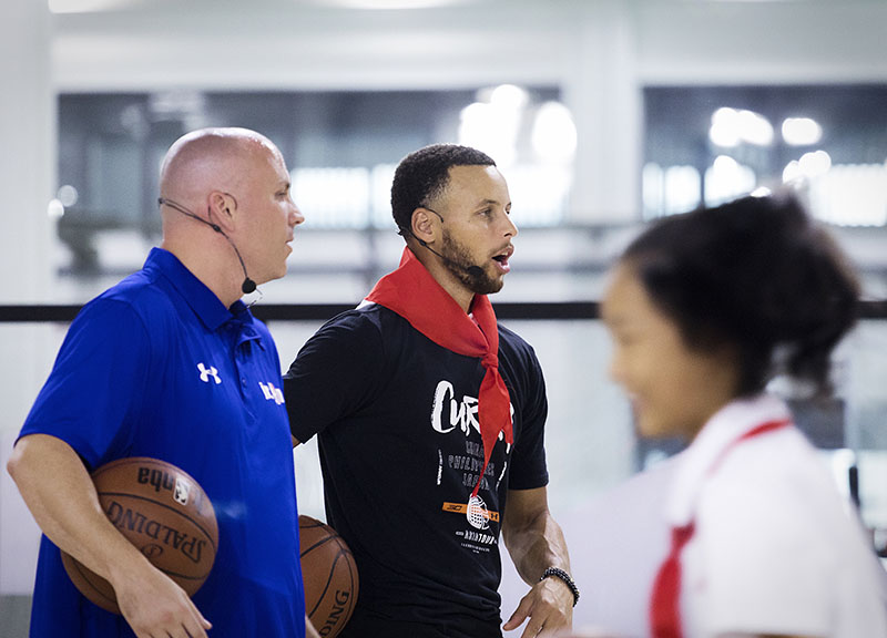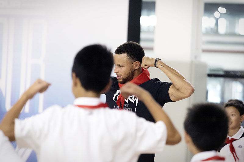 结束第二天的行程,第三天正值 9 月 10 日教师节,库里准备为华中科技大学附属中学的学生们上一堂别开生面的篮球课。