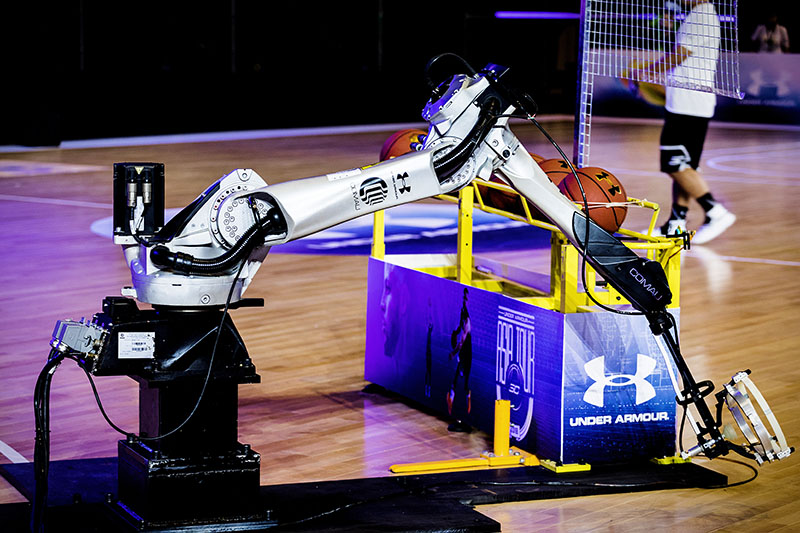 和机器人“Racer 7”对战三分投篮。