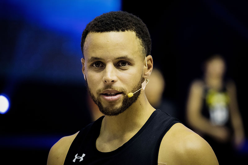一番热身结束后,库里开始变换身份,转为教练指导球员们进行 3v3 对抗。