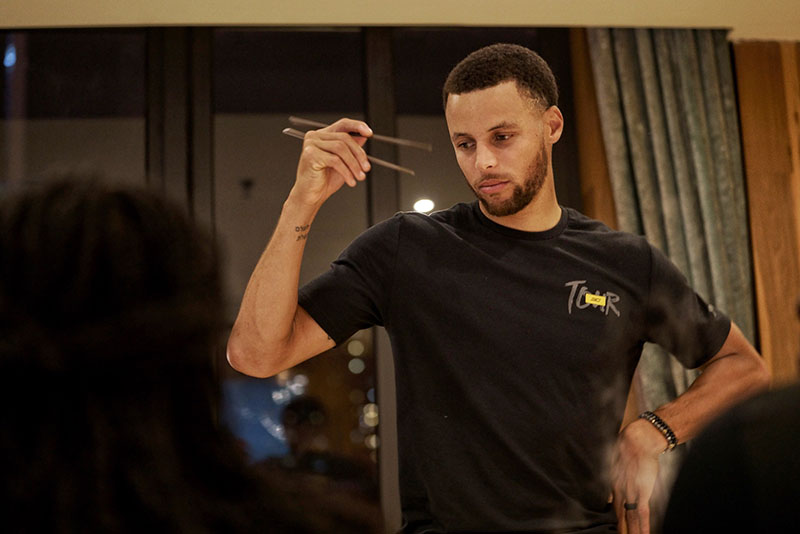 这一次,库里将日常热身训练的独家秘笈,传授给在场的球员们。