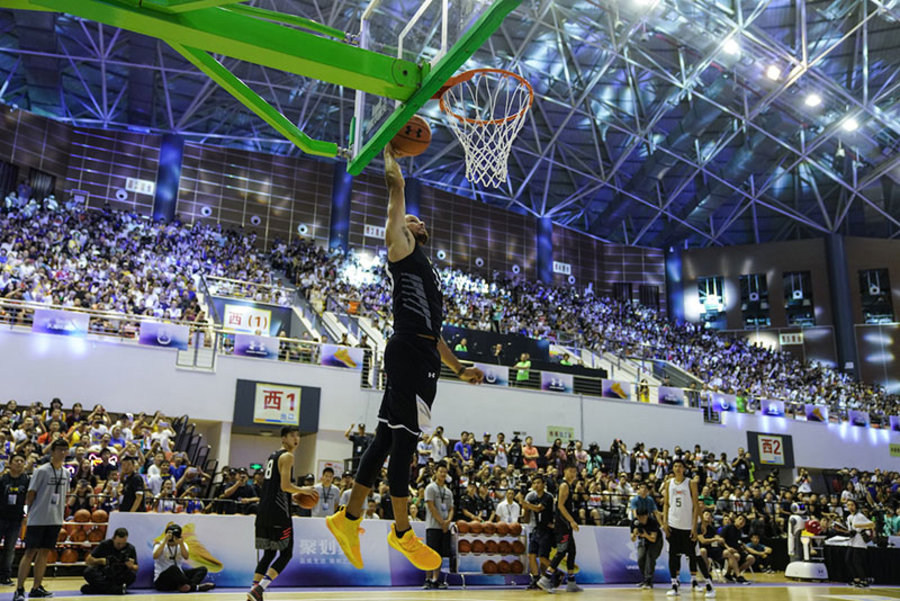接着令人意外的带头示范了一记暴扣,“NBA勉扣王” 的帽子在社会主义的篮筐上算是摘掉了。