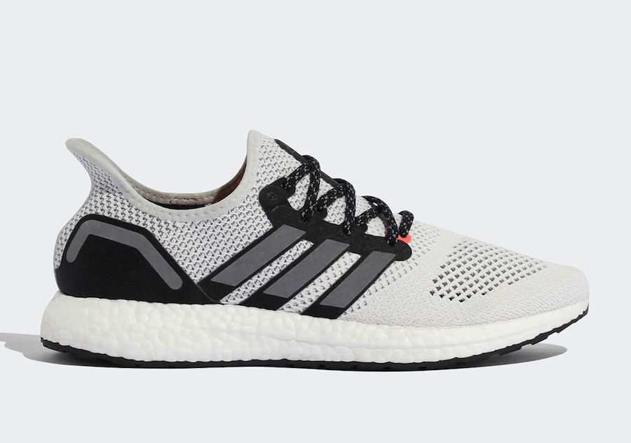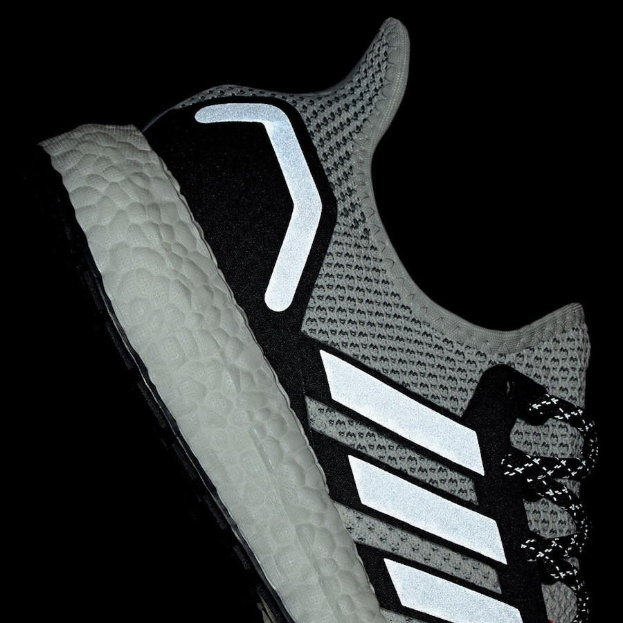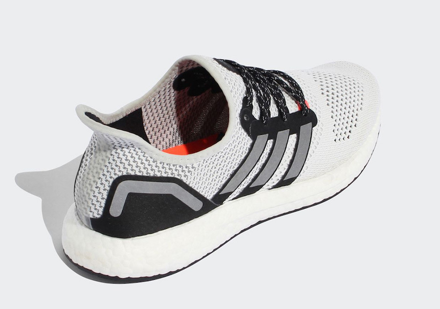 鞋款整体以灰白色为主调,在外形上与此前的 AM4 鞋款有着不小的区别,侧面加入经典的三道杠 Logo 并加入 3M 反光材质,在夜晚非常醒目,细节中点缀橙色,整体气质简约;在脚感上更厚的 Boost 缓震中底也有更明显的力量反馈。