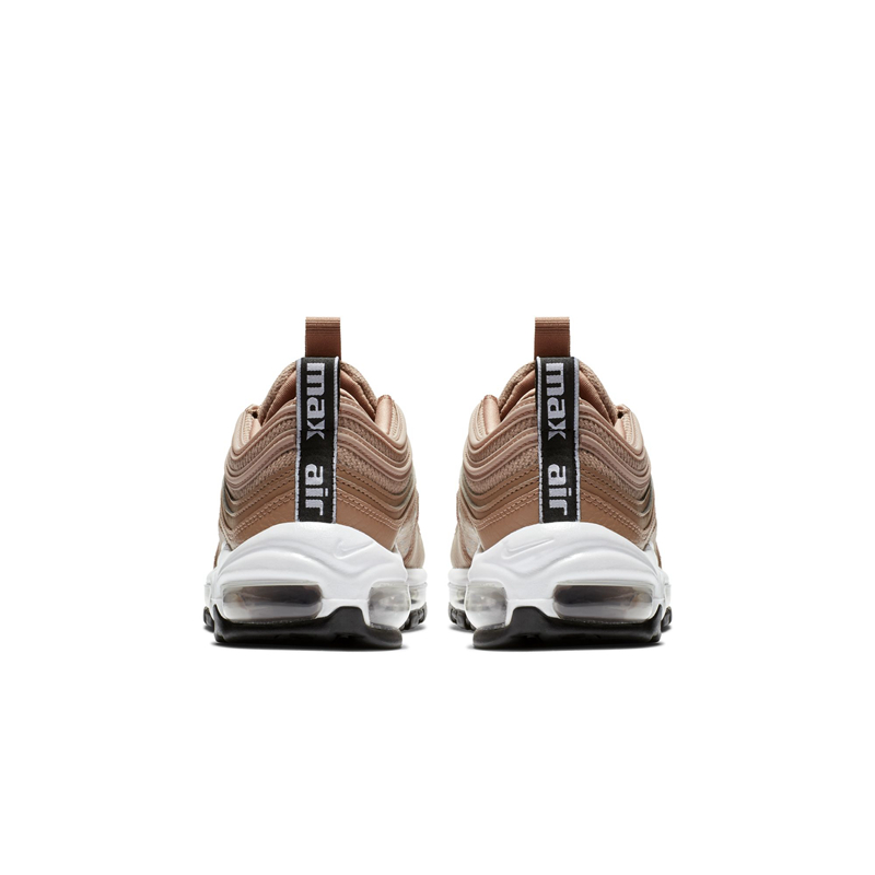 其中一款酷似金子弹配色,但颜色更加柔和,偏向玫瑰金色调。特别之处在于平时绣有 Swoosh Logo 的窗口和气垫侧面都布满了 Swoosh Logo 和 “AIR” 字体,看来近期 Nike 很喜欢将经典的 Logo 以阵列排布的方式使用。