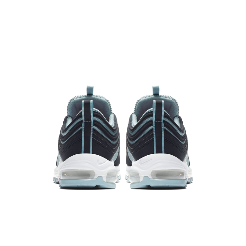 另一款为深浅两种蓝色装扮,百搭又不失清爽。气垫上同样带有印花细节,后跟外侧印有 “air max” 字体,彰显科技。