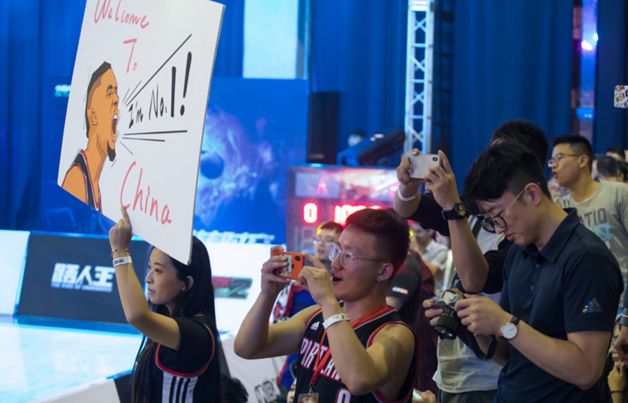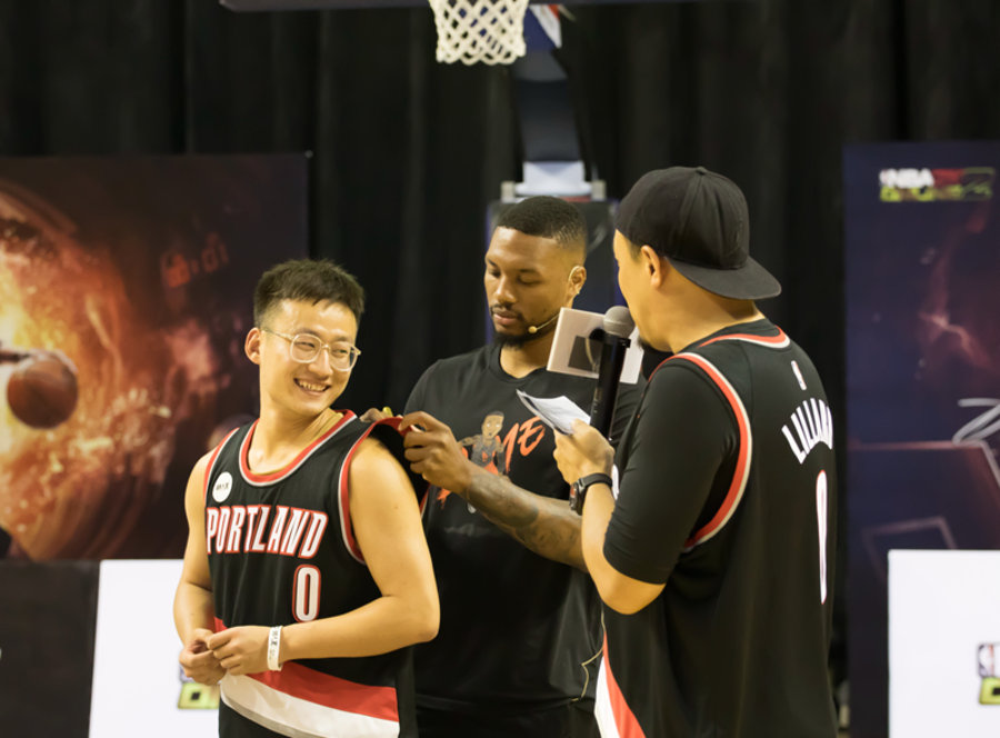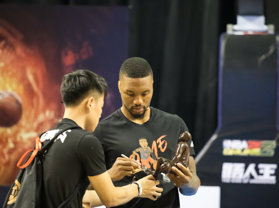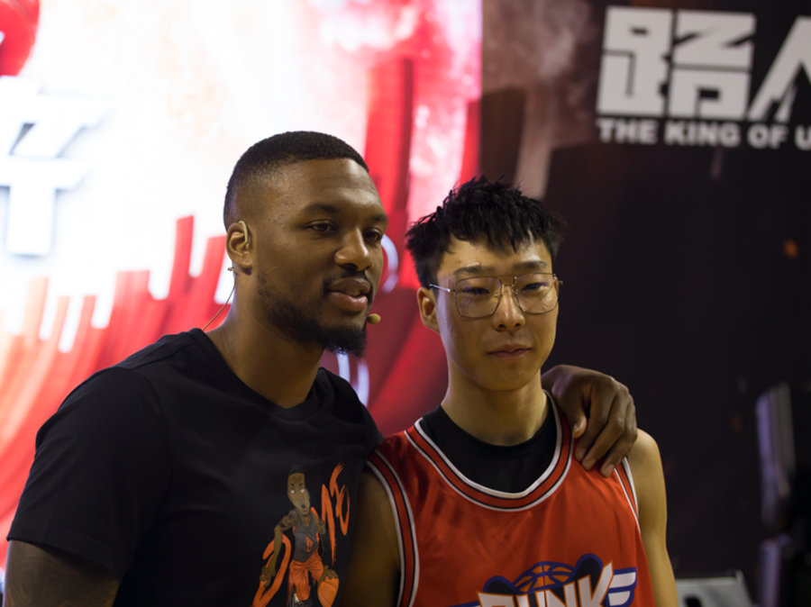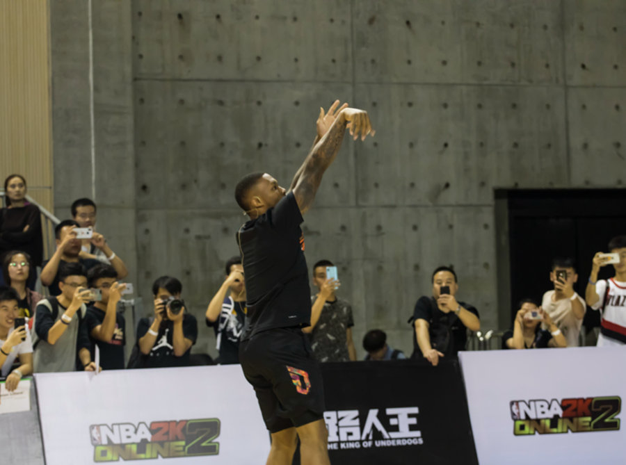 当然,这次中国行不能没有真正的篮球环节,利拉德走进球场,与球迷进行投篮模仿游戏,展示出标志性的运球投篮技巧。