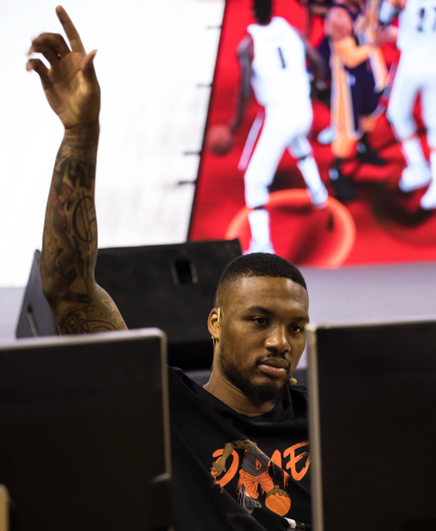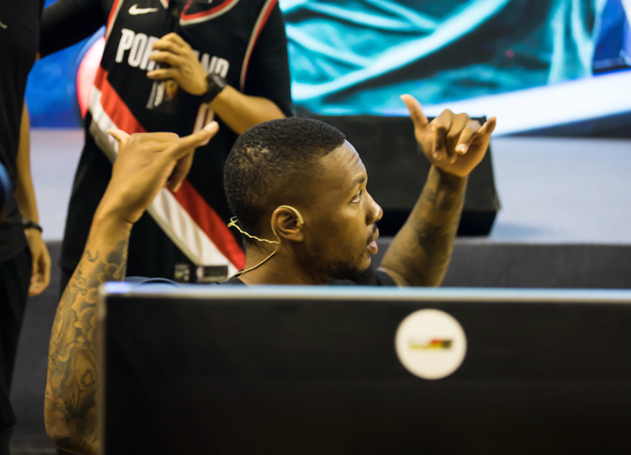 今天的另一个活动就是 NBA 2KOL 2 的游戏对抗。对于 2K 游戏,不少球员都是好手,利拉德更是身经百战,自曝曾连打 5 个小时,是个货真价实的 “网瘾少年” 了。