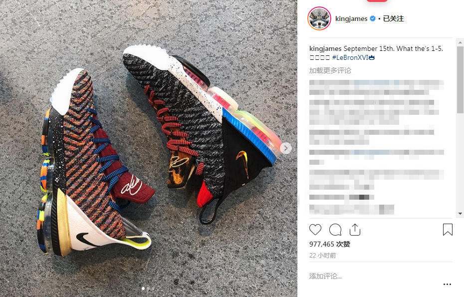 值得一提的是,詹姆斯本人似乎也对这款配色的极其喜爱,迫不及待的在个人 Instagram 上晒出该配色,并预告了发售日期 9 月 15 日。