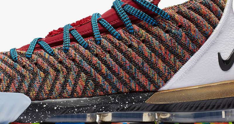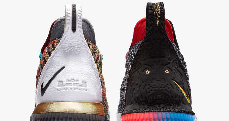 “Fresh Bred”、“Strive for Greatness”、“20_20 Vision” 以及 “Promise” 和 “King” 这五款经典配色方案,都在这双 LeBron 16 “What The” 中一一呈现,致敬经典的同时,再度强调 LeBron James 本人在球上场 “1Thru 5 ” 的统治级表现。
