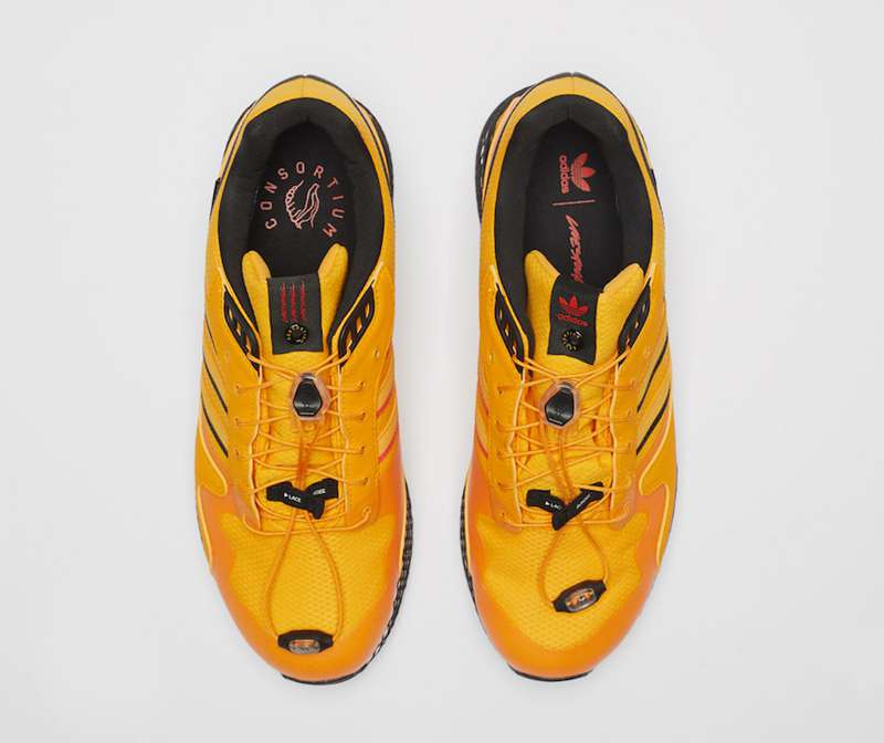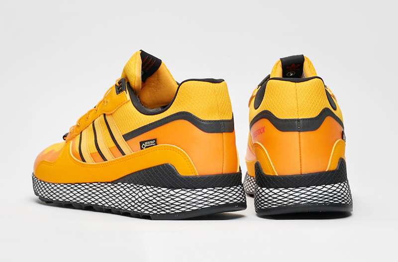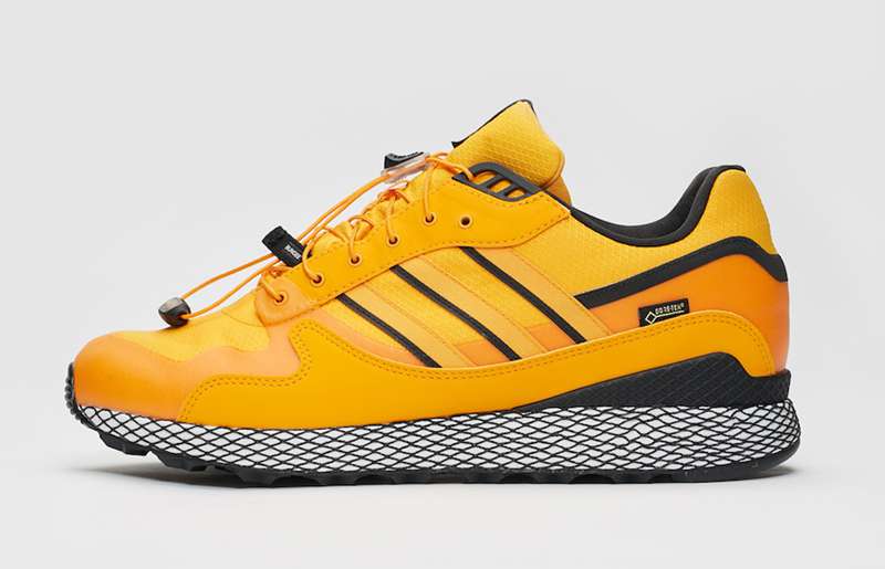 adidas Ultra Tech GTX 鞋身以黄色为主色调,并辅以黑色进行细节点缀,类似于 “李小龙” 配色,鞋面则是保温、防水好手 GORE-TEX 打造,鞋带系统则替换为弹力锁扣式,机能属性满满。