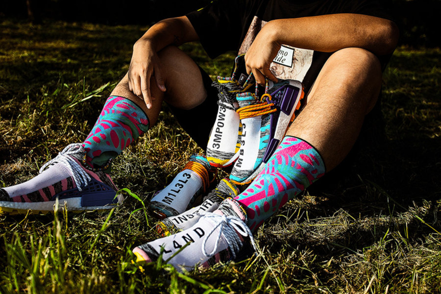 这三款非洲主题菲董 NMD 都以彩色条纹装扮,其上有白色方框中间填充字体。从设计上看其实颇具新意,但夸张的色彩与独特的外形相结合,就不是所有老铁都能轻松驾驭的了,这恐怕也是它 “倒闭” 的原因之一。