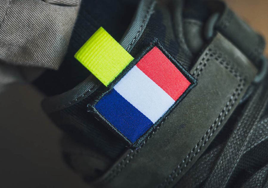 鞋舌处点缀有法国国旗,通过魔术贴与鞋舌相连,后跟处也有魔术贴材质,为更多玩法提供可能。