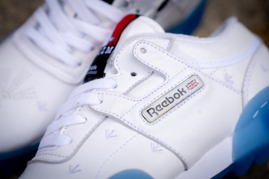 以经典鞋款 Reebok Workout 为蓝本打造,纯白色鞋面以刺绣的 Prison Arrows 箭头图案点缀,鞋头处也有相同形状冲孔设计。