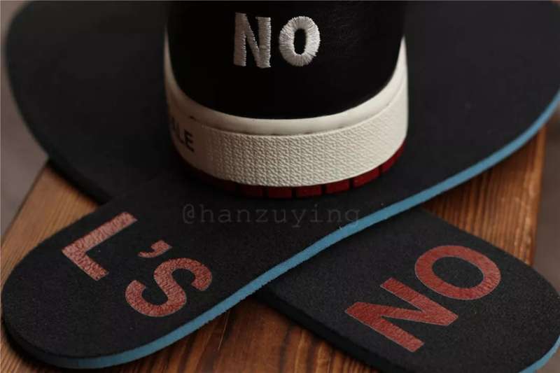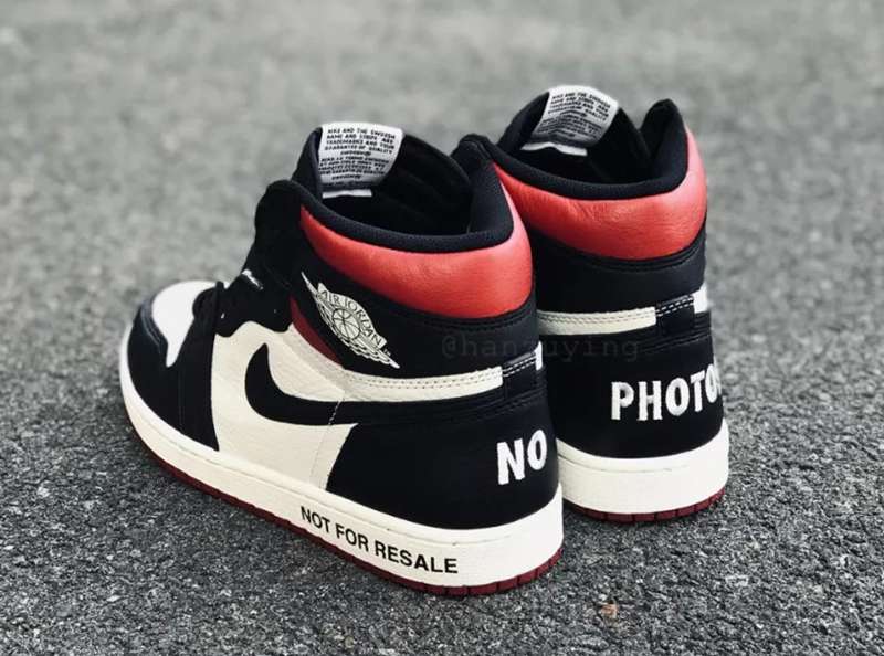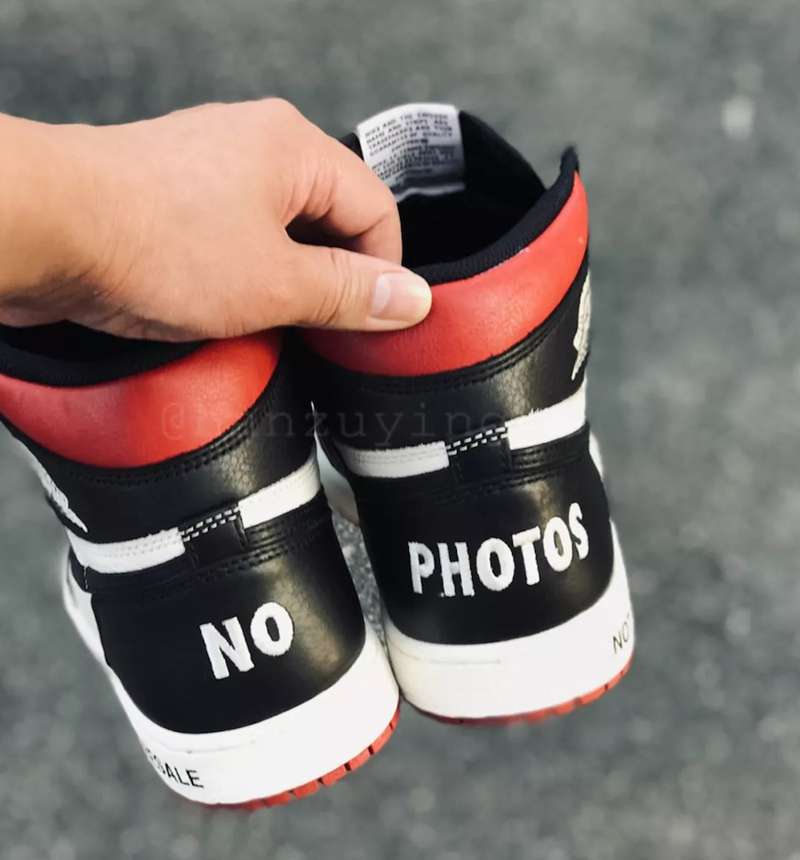 后跟处原本的 Jumpman Logo 则改为刺绣的 “NO”、“PHOTOS” (没有照片);后跟处的中底则印有 “NOT FOR RESALE”(不是用来炒卖的)。