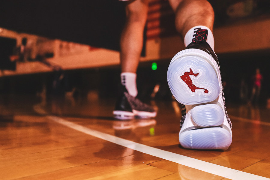 而在测试中小编也发现 LeBron 16 在灵敏性方面确实提升了不是一点两点。最直观的是鞋帮的改变,将之前将鞋帮高度调整为较矮的设计,不管是进攻中的左右变向,还是防守中的侧向滑步,脚踝都不会受到鞋帮的阻碍,从而在运动中变的更加灵活。