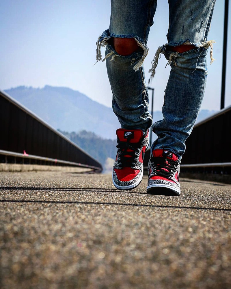 配色方面参考了 Dunk 大学系列主题,高帮的造型更为街头,同时也是最早被许多玩家拿来配鸳鸯的鞋款。