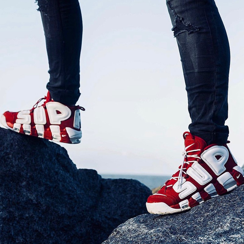 尽管在去年《有嘻哈》现场,吴老师歌词中狠吹一波的 Supreme 联名 Jordan 并不是他脚下的 Air More Uptempo “Suptempo”,但这不影响此三双鞋款随后恐怖的价格上涨。