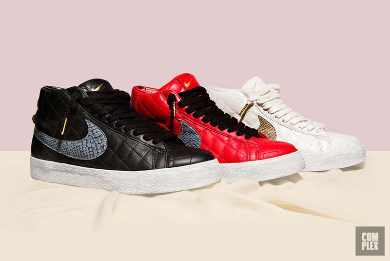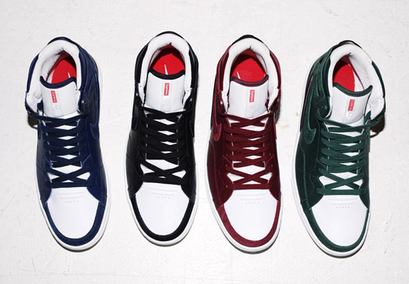 Blazer 鞋款也是 Supreme 偏爱联名的对象。如今 Nike SB 系列自身已经风光不再,2016 年联名的 Blazer Low GT 此三双配色也是难逃倒闭命运。