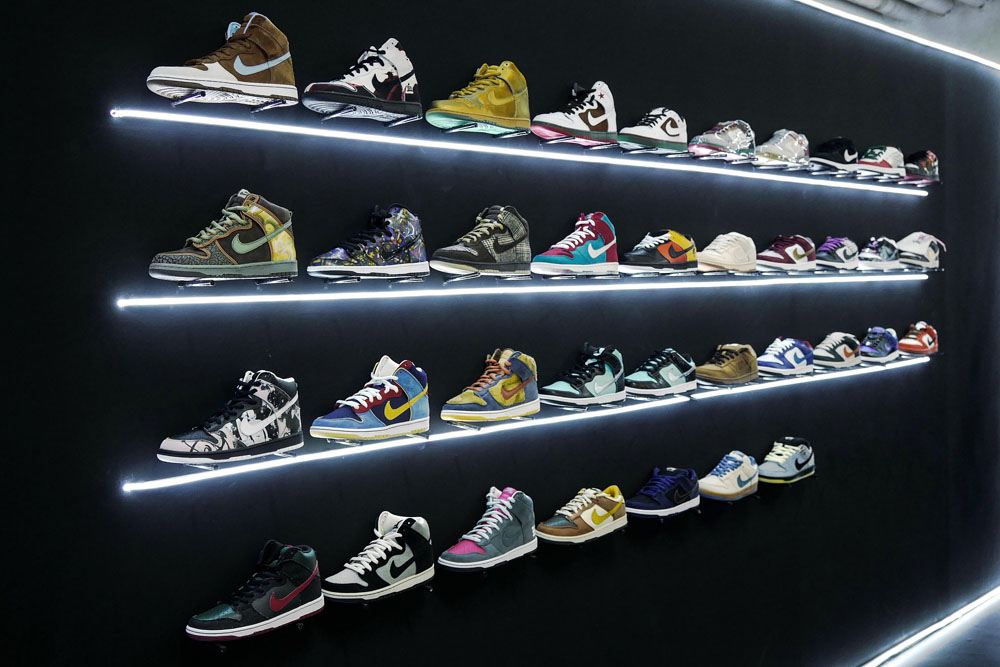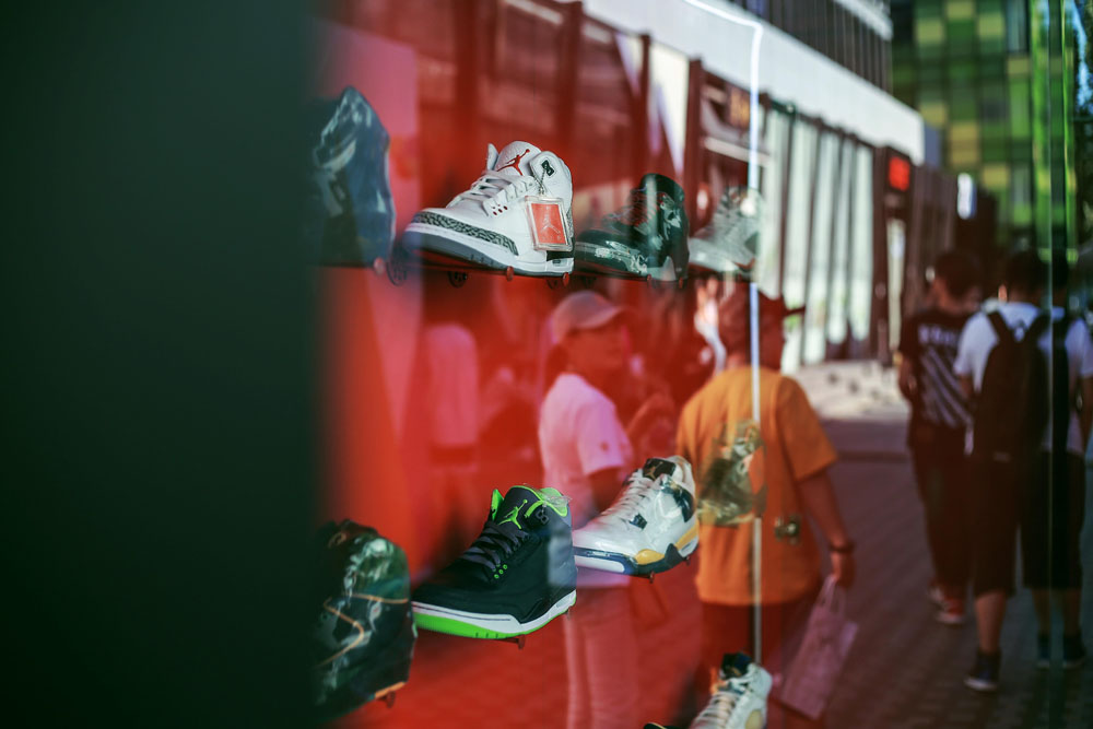 此外 Jordan Brand 还在一层露天区域打造了特殊的「鞋盒」展示 Air Jordan 1-20 代签名鞋供路人参观,而这些珍贵的 Nike 球鞋收藏均是由 DEAL 负责提供。