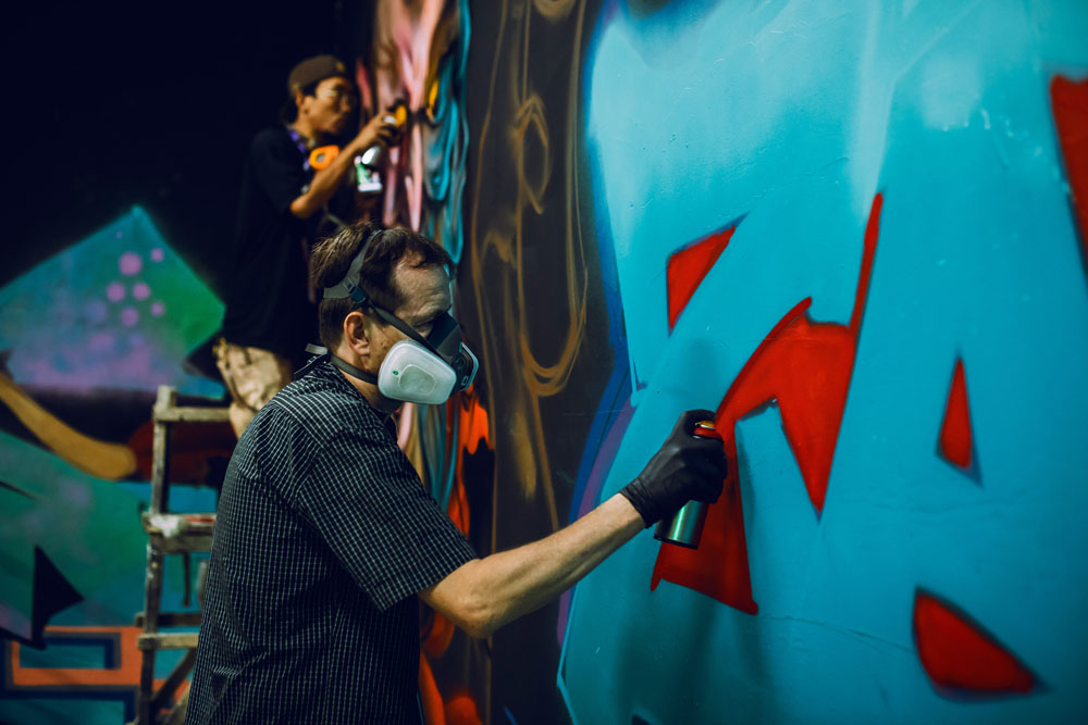主办方 400ML 今年再次邀请了来自全球的 30 位涂鸦艺术家来到现场,并在地下三层的墙壁上创作了一幅幅精妙的主题涂鸦。