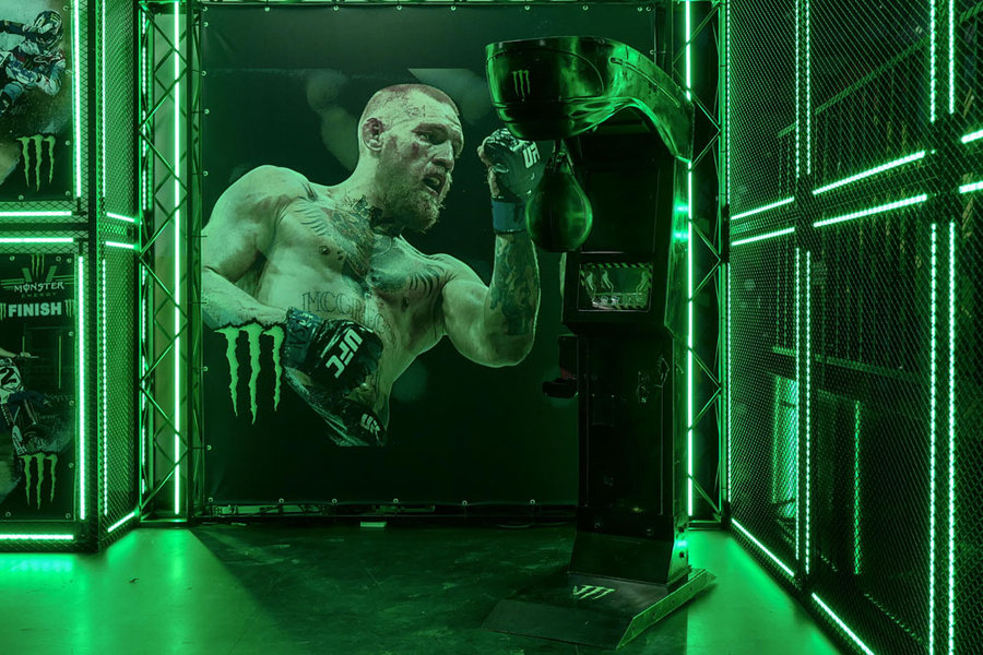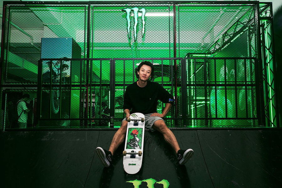 加州运动饮料 Monster Energy 在现场搭建的滑板池,方便各位滑板爱好者切磋技艺,并邀请中国滑板重要先驱车霖亲自到场带来精彩的滑板秀。现场也同时不断派发运动饮料,在大家逛累的时候提供必要的补给,成为全场活动最火爆区域之一。