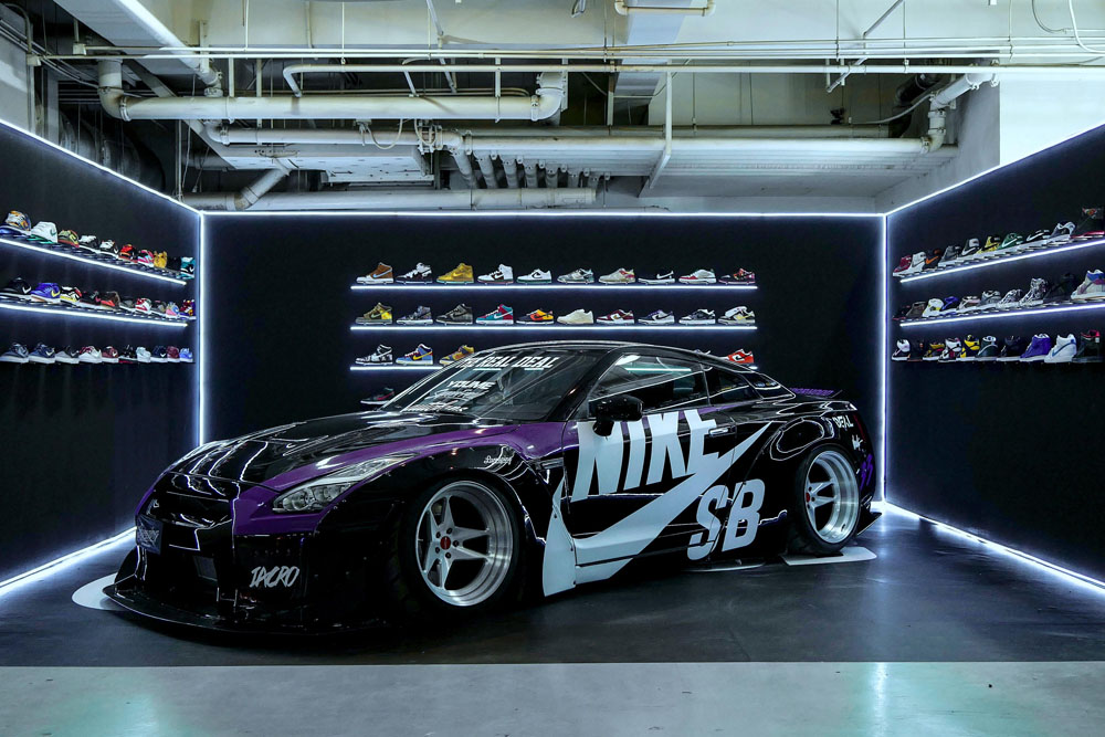 在球鞋方面,Nike SB 展位以三面鞋墙带领大家回顾了史上最重磅的 Dunk SB 设计,而以 Dunk SB 为主题的 GTR 改装车,也是特别邀请中国最权威的改装车机构:iAcro 及车体涂装改造机构:Larruping 共同打造,作为今年会场上最抢眼的存在。