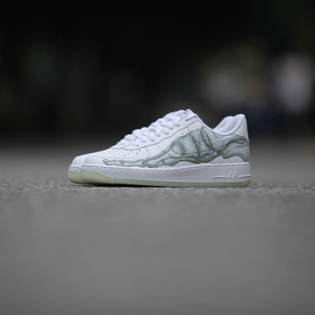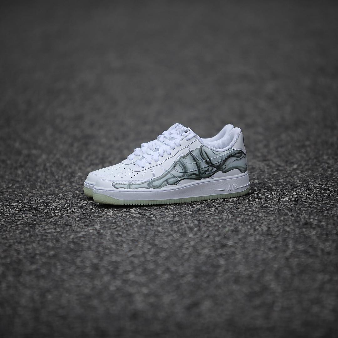 早在今年五月份,Instagram 知名爆料账号 @py_rates 曝出一双专为万圣节打造的 Nike Air Force 1 QS “Skeleton”。