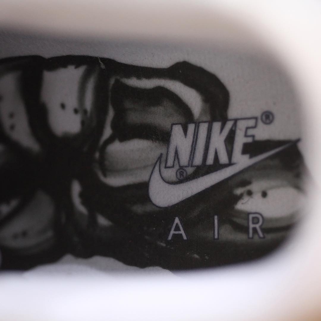 与效果图不同的是,鞋面上的印花是以浅灰的彩色呈现,更加逼真的同时还带有涂鸦的效果,再加上看起来似乎有夜光效果的水晶外底,绝对是万圣节期间穿着的上佳选择。