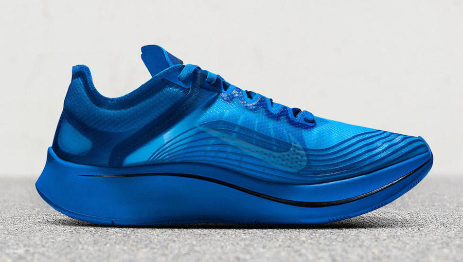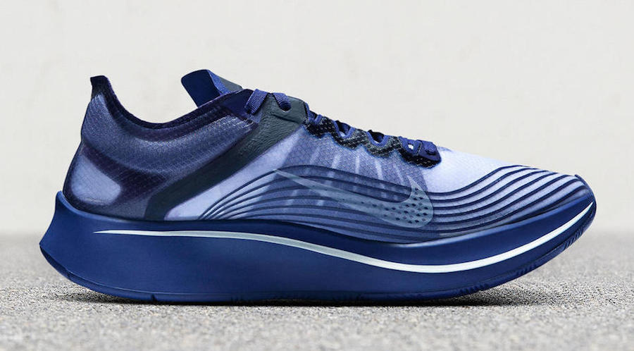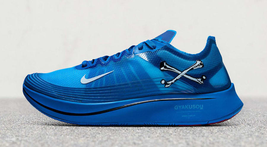 此次 GYAKUSOU x Zoom Fly SP 联名将带来三款配色,分别为蓝、黑、紫进行覆盖,并依旧搭载蝉翼示人,后跟交叉骨与中底 “GYAKUSOU”、“UNDERCOVER ” 文字则彰显独特身份!