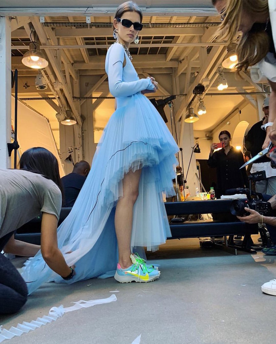 在 OFF-WHITE 2019 春夏系列服装展开始前,主理人 Virgil Abloh 与名模 Bella Hadid 晒出自拍并透露了 OFF-WHITE x Nike 的最新联名鞋款。