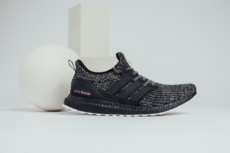 系列包含 Ultra Boost、Ultra Boost X 与 Pure Boost X 三双鞋,配色都以黑白色为主调,细节中点缀粉色,每双鞋后跟处的粉红丝带凸显配色主题,每双颜值都不错!