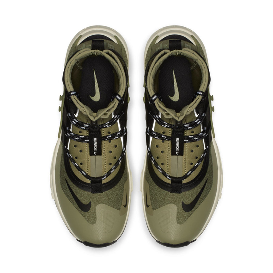 鞋面由热熔和高密度织物打造,接缝处有压胶处理,侧面的绑带系统强化支撑。领口处为双层设计,外层还带有拉链,这些设计表明这款鞋拥有防水功能。