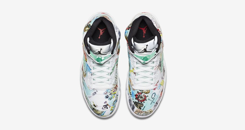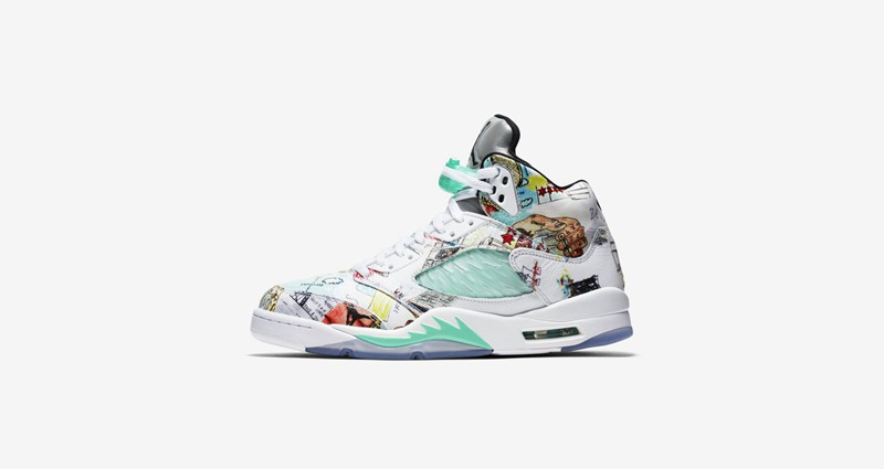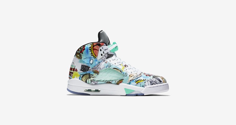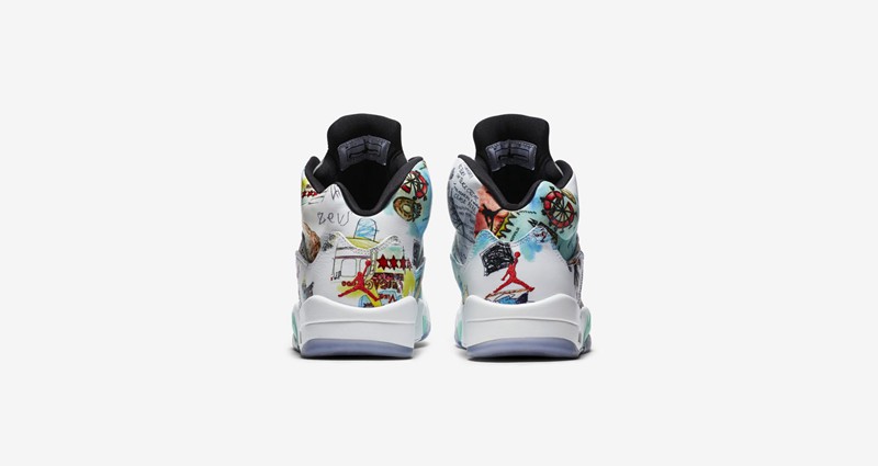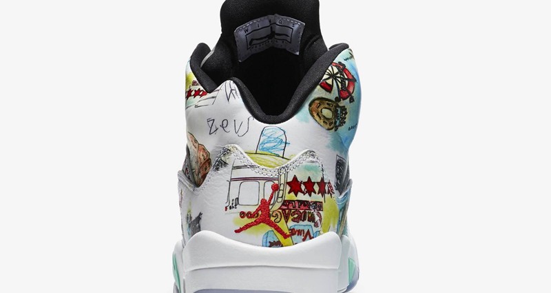 此双 Air Jordan 5 “Wings” 作为最新的 “Wings” 系列鞋款,一改之前 Air Jordan 1 与 Air Jordan 12 黑白金风格,而是以白色鞋身基底辅以大面积的手绘涂鸦图案示人!