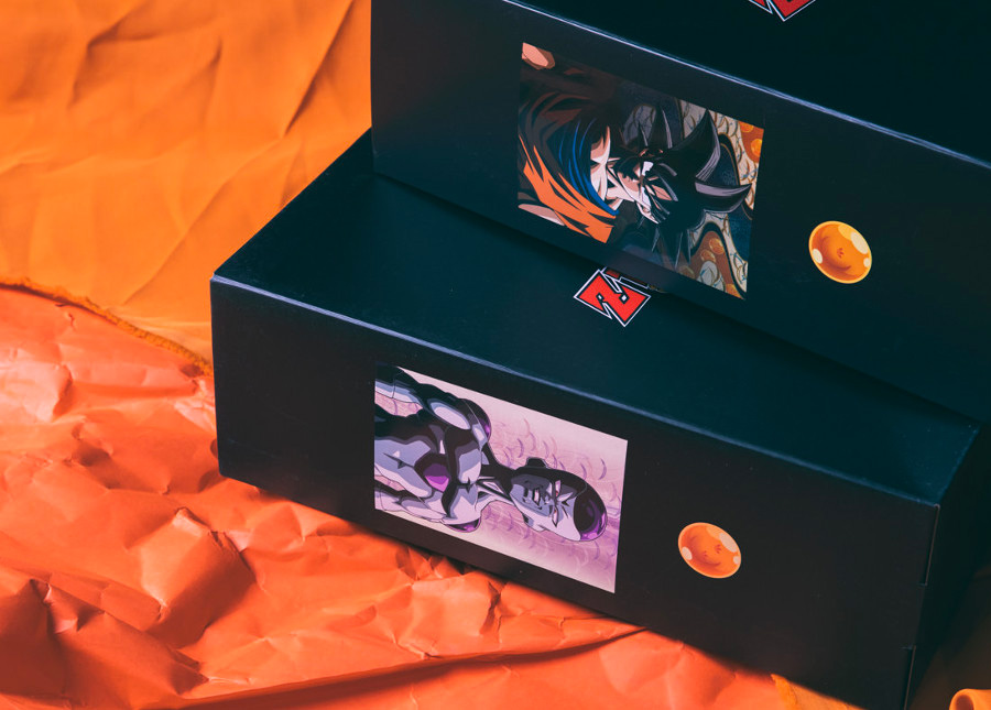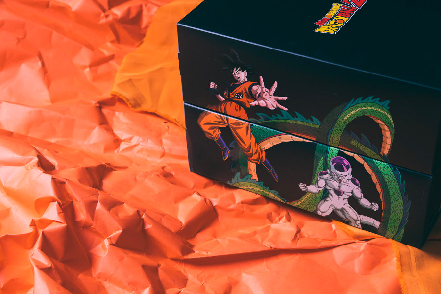 鞋盒则是另外的一大亮点,这两个鞋盒可以组成 “悟空 VS 弗利萨” 的经典画面,鞋盒内的衬纸也别具一格。