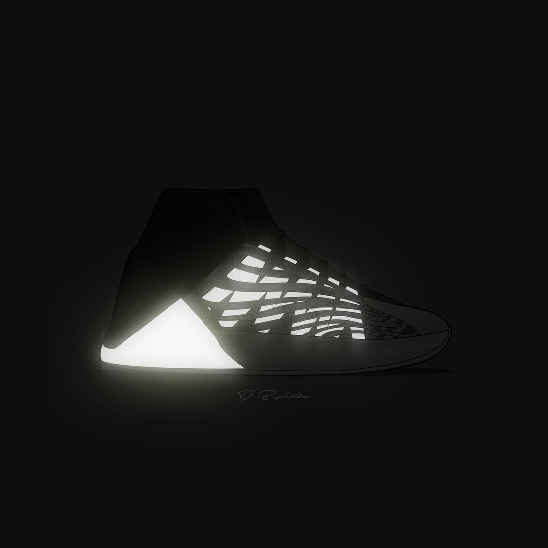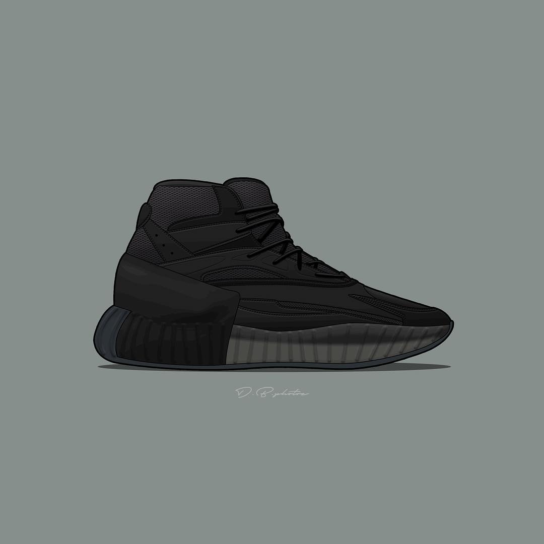 球鞋插画师 @d.b.photoz 也带来了 Yeezy 篮球鞋的效果展示,在他的作品中,不仅再现了侃爷亲着配色的基本造型和配色设计,更是特别展示了 3M 的反光效果。